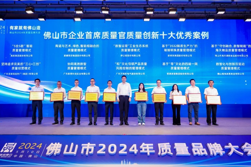 5月10日是第八个中国品牌日,由佛山市市场监督管理局统筹的“有家就有佛山造”佛山市2024年质量品牌大会举行,市委副书记、市长白涛,副市长乔羽、市政府秘书长张开机,副秘书长李生春等领导嘉宾和来自佛山各行业的三百多家品牌企业参会出席本次会议。
