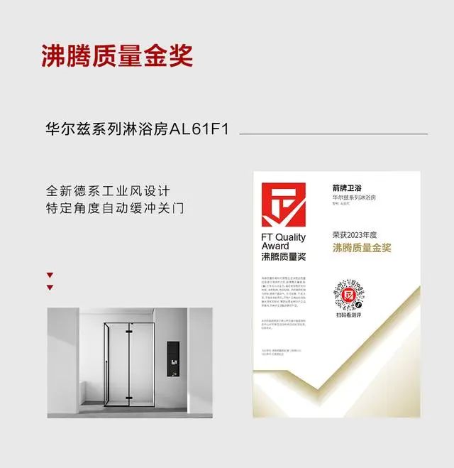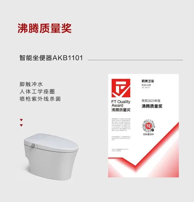 在2023沸腾质量奖评选中,箭牌卫浴12款产品成功上榜。不仅如此,箭牌家居升降助力器、淋浴椅、防滑扶手等产品还入选了国家工信部公示的《2023年老年用品产品推广目录》。